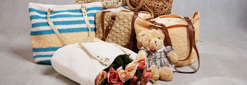 Set of 3 oval rattan baskets in multi color with 2 handles