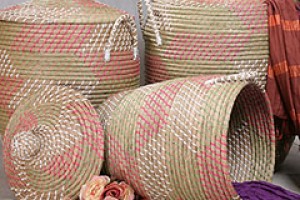 Set of 2 rectangle rattan basket with cut-out handles in multi color