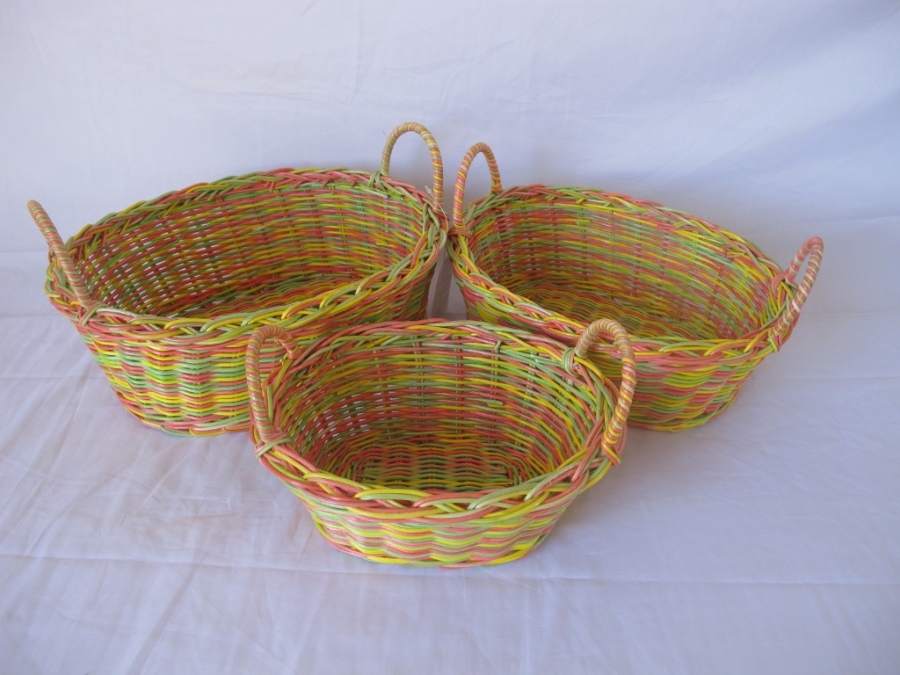 Bộ 3 giỏ oval mây cải nhiều màu có 2 quai