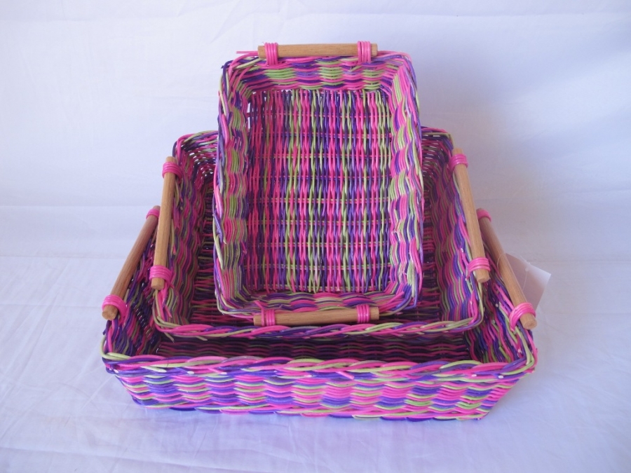 Bộ 3 giỏ mây chữ nhật cải nhiều màu có 2 quai song